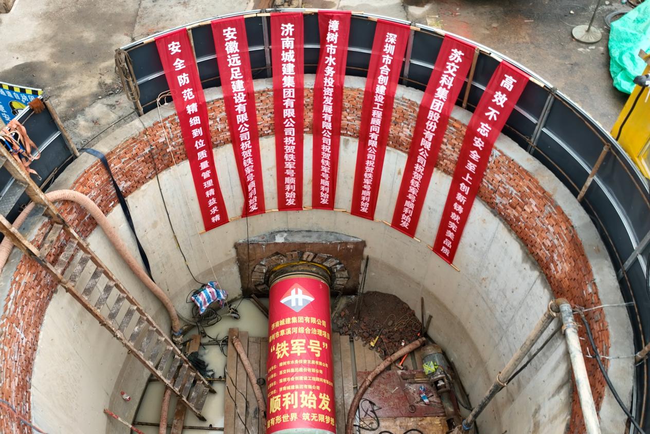 近日,由建設集團所屬濟南城建集團公司承建的樟樹市草溪河綜合治理項目藥都大道首段頂管順利始發,標志著樟樹市草溪河綜合治理項目頂管施工正式開始頂進作業。