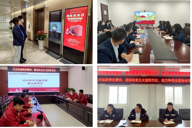 活動期間,集團在宣傳平臺開設“法治小課堂”欄目,推送《國家憲法日| 憲法和你的一生有什么關系?》《憲法宣傳周│“憲法知識知多少”專題測試》《憲法宣傳周│習近平法治思想應知應會(上)》《憲法宣傳周│習近平法治思想應知應會(下)》《憲法宣傳周│習近平法治思想專題測試》5篇普法推文,并通過集團電子屏投放憲法宣傳海報,營造濃厚活動氛圍。同時,集團積極組織各部室、子公司積極參與2023年全國 “憲法宣傳周”憲法知識網(wǎng)上競答活動,廣泛動員各子公司靈活采用線上、線下相結合的普法形式,大力加強習近平法治思想與憲法等內(nèi)容的學習宣傳。