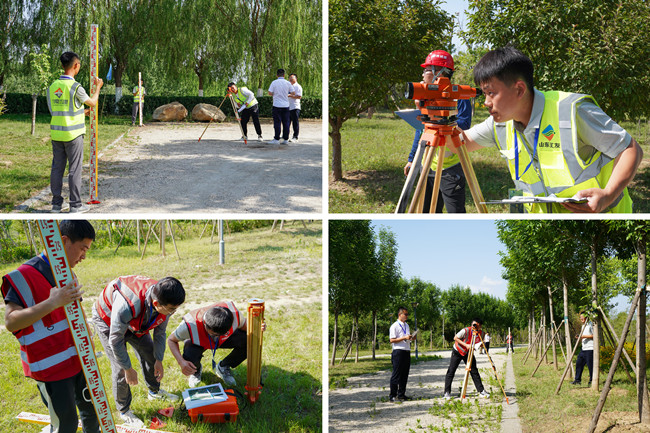 測量職業技能競賽采取理論與實際操作相結合的考試形式。理論考試主要考察工程測量相關職業技能知識掌握情況,實際操作考察四等水準測量操作水平。10支代表隊參賽。賽場上,各隊相互比拼,激烈角逐,隊員分工明確,迅速架設水準儀,手握水準尺不停跑位,測距搬站、觀測讀數、記錄計算,全力比拼、爭分奪秒,展現了城建速度和精益求精的鐵軍風采。