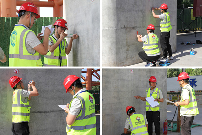 試驗檢測技能競賽采取理論與實際操作相結合的考試形式。理論考試與實際操作緊密相關,主要考察混凝土抗壓強度檢測(回彈法)和鋼筋保護層厚度檢測(電磁感應法)。10支代表隊,20名參賽選手參加競賽。賽場上,參賽選手們嚴格按照標準要求,現場選擇測區(測點),正確率定回彈設備,熟練地操作先進儀器設備,一絲不茍讀取并記錄數據、現場計算并處理數據、判定檢測結果,充分展現了城建鐵軍在工程建設上精益求精,“質”在必得的匠人風采。