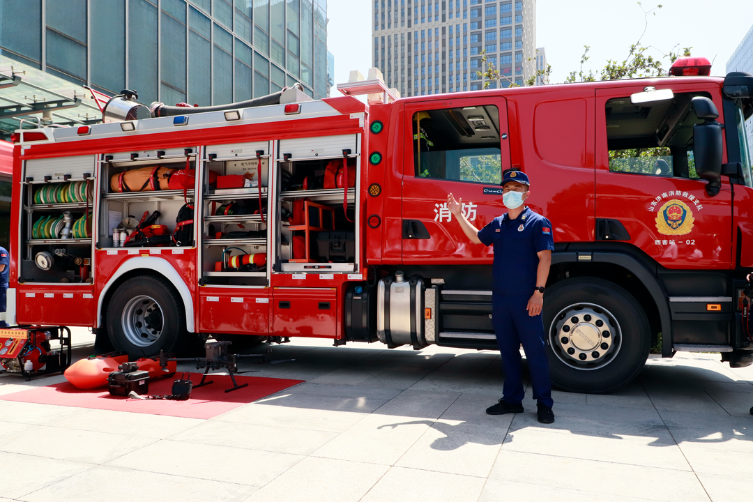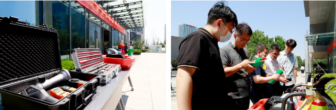 槐蔭區(qū)消防救援大隊對消防車上的各式裝備器材及操作方法進行宣講,幫助現(xiàn)場人員認識救援無人機、空氣呼吸器、方位指示燈等裝備器材。同時,在宣講員手把手的教學中,現(xiàn)場人員熟練掌握了“拔、握、瞄、掃”的滅火器使用方法并進行了滅火實戰(zhàn)演練。實戰(zhàn)演練結(jié)束后,現(xiàn)場人員在安全生產(chǎn)承諾墻上簽下名字,承諾將以身作則,堅守安全紅線,遵守安全生產(chǎn)法。