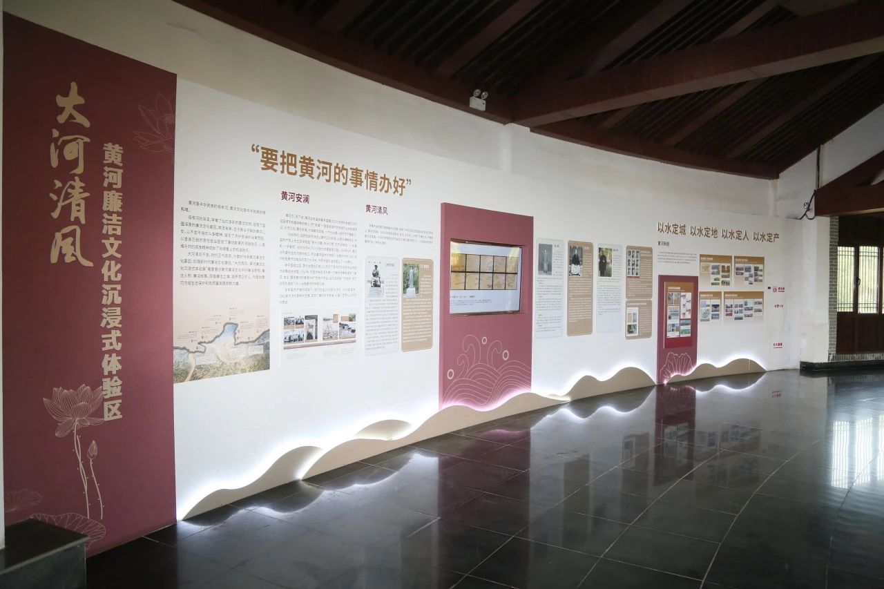 在“沐清風”展區,通過“黃河安瀾”“黃河清韻”“黃河新貌”“黃河清風貫古今”四個部分,以故事為敘事載體,輔以多媒體展示,打造“大河清風”黃河廉潔文化沉浸式體驗區。