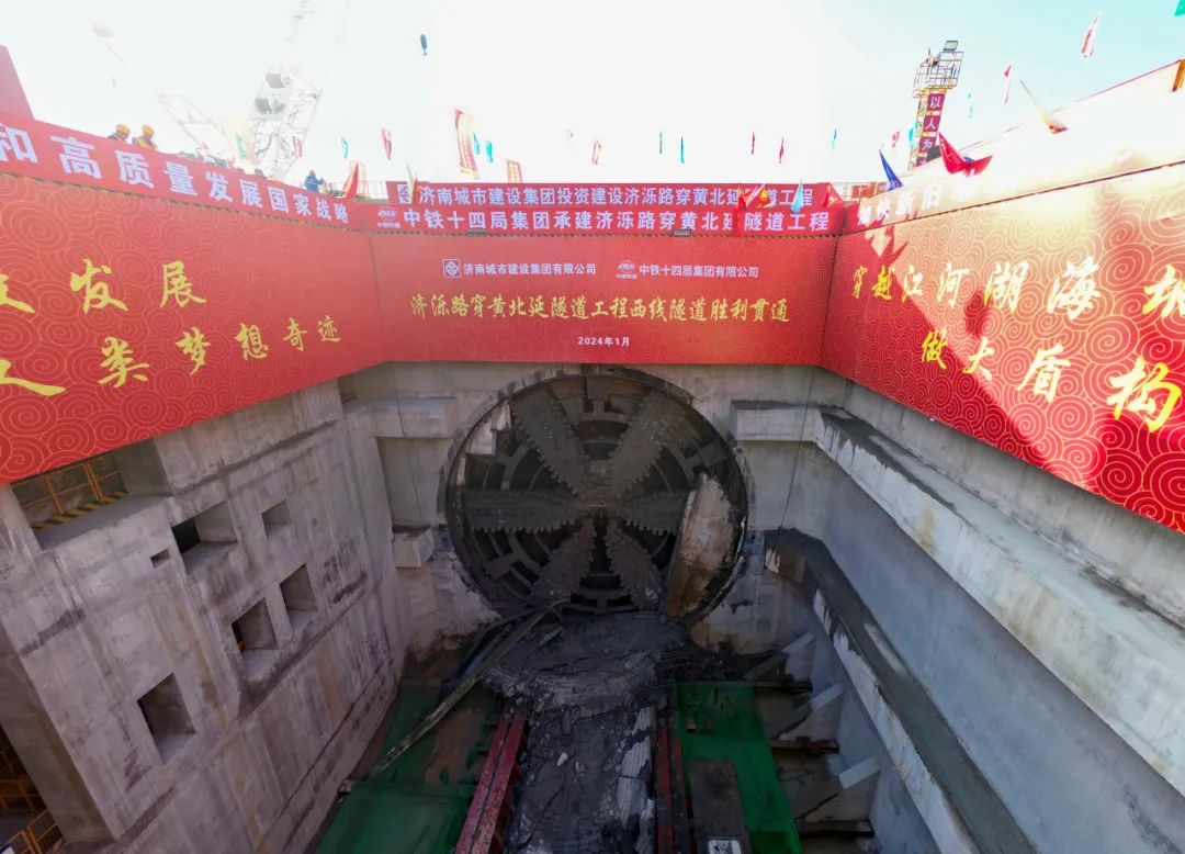 1月6日,隨著“黃河號”盾構機刀盤破洞而出,順利抵達接收工作井,由濟南城市建設集團負責建設的濟南黃河濟濼路北延工程西線隧道貫通,為國內首次實現超大直徑盾構隧道穿越大中型水庫,為超大直徑盾構隧道穿越大中型水庫積累了寶貴經驗。