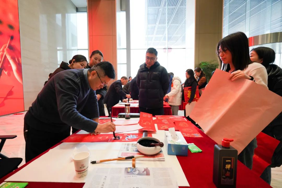 活動現場,書法家結合企業及職工的不同需求,為集團職工書寫春聯,同時集團職工書法愛好者也紛紛參與其中,共同書寫對美好生活的期盼。