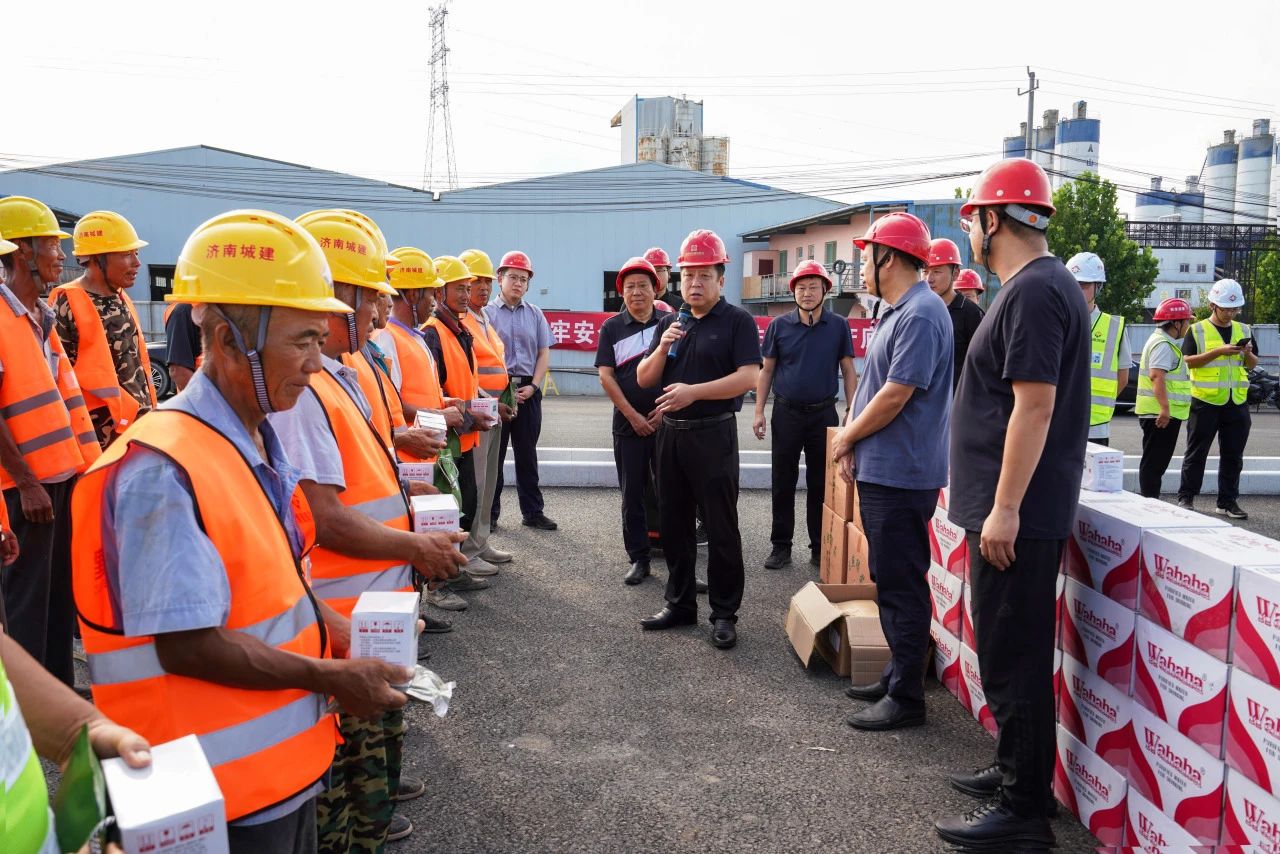 為認真落實夏季高溫期間防暑降溫工作部署,做好高溫天氣作業勞動保護工作,切實維護一線職工的勞動安全健康權益,8月6日,建設集團黨委副書記、總經理楊峰帶隊到項目一線開展“送清涼”活動,集團總經理助理、安全總監解漢忠,集團總經理助理翟彬參加活動。