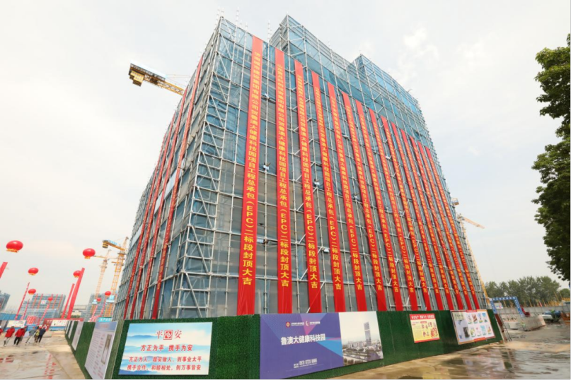 魯澳大健康科技園是山東省與澳門在中醫(yī)藥領(lǐng)域合作的核心平臺,由濟(jì)南市、山東中醫(yī)藥大學(xué)、澳門科技大學(xué)三方聯(lián)手打造。項目位于長清區(qū)大學(xué)路,總建筑面積19.6萬㎡,是建設(shè)集團(tuán)產(chǎn)業(yè)園經(jīng)濟(jì)產(chǎn)業(yè)鏈?zhǔn)着椖浚伤鶎偕綎|貫月科創(chuàng)投資集團(tuán)投資建設(shè)。項目共分為兩個標(biāo)段,當(dāng)前封頂?shù)膶儆诙?biāo)段。