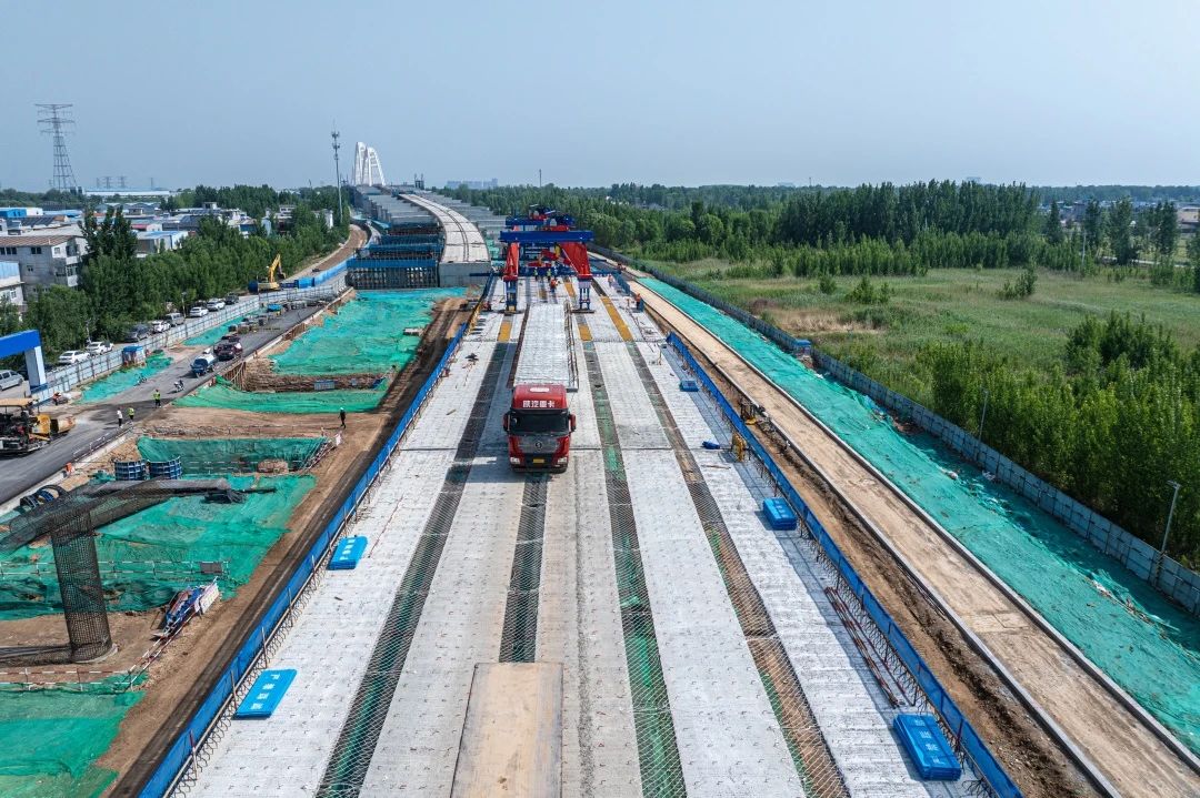 截至目前,濟南黃河齊魯大橋項目橋梁樁基施工全部完成,正積極推進項目地面道路、承臺、墩柱、蓋梁、現澆箱梁及橋面系施工。