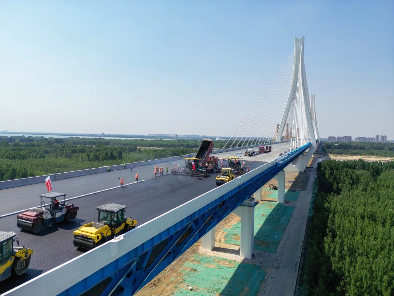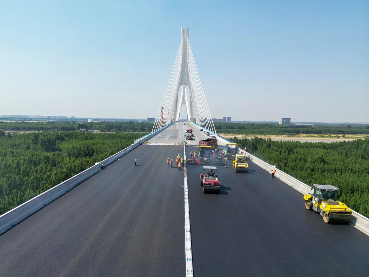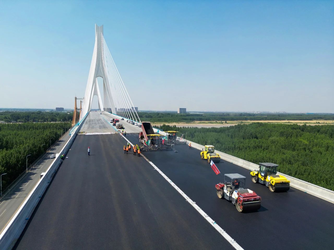 近日,由建設集團承建的G104京嵐線濟南黃河公路大橋擴建工程的橋面瀝青攤鋪工作已全面展開。目前,大橋北岸橋面瀝青鋪設已經完成,南岸的攤鋪工作也正在緊鑼密鼓地進行中,標志著大橋距離正式通車又邁出了堅實的一步。