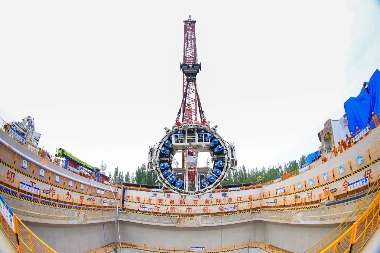 濟南市黃崗路穿黃隧道“山河號”盾構機主驅動及四號臺車順利下井