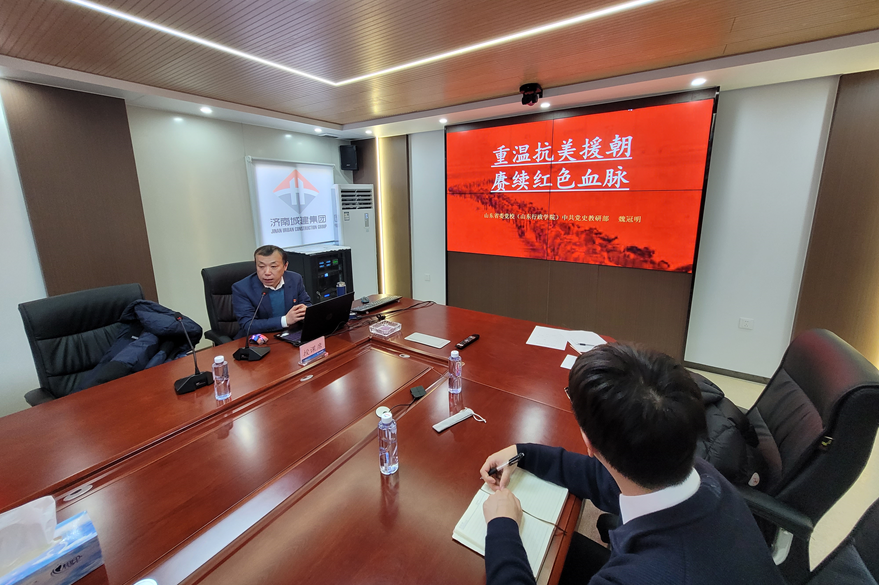 為大力弘揚愛國主義光榮傳統,銘記革命歷史、傳承紅色精神,1月3日,濟南城市建設集團融港發展有限公司黨支部聯合中建八局二公司黨支部、濟南城建集團建筑分公司黨支部、中鐵十四局機場項目黨支部在遙墻機場配套項目建設指揮部開展“重溫抗美援朝,賡續紅色血脈”主題黨課活動。