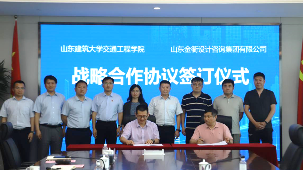 近日,建設(shè)集團(tuán)所屬山東金衢設(shè)計(jì)咨詢(xún)集團(tuán)有限公司與山東建筑大學(xué)交通工程學(xué)院簽署戰(zhàn)略合作協(xié)議。