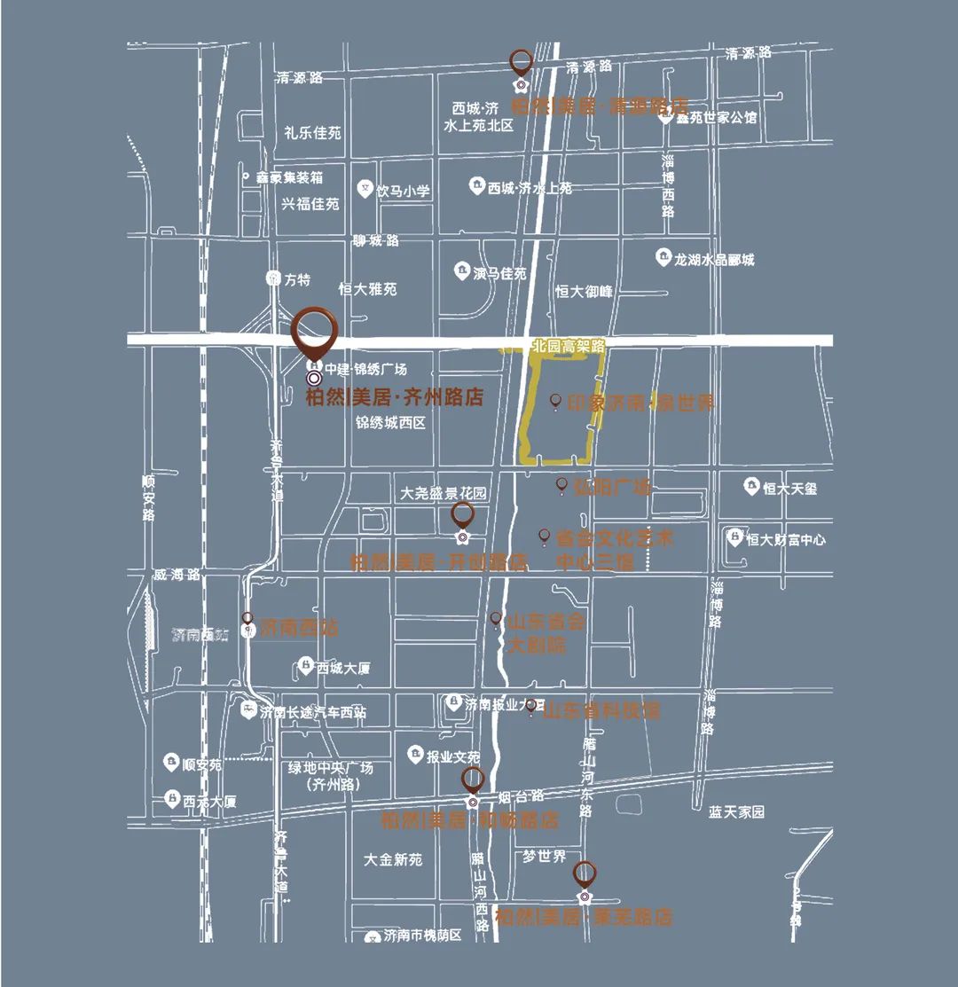 柏然美居(齊州路店)擁有完善的配套服務設施,中建幸福Mall商場近在咫尺,項目緊鄰地鐵1號線方特站出口,距離印象濟南、弘陽廣場、山東省科技館約1.5公里,距離濟南西站約1公里,周邊生活、交通配套齊全。