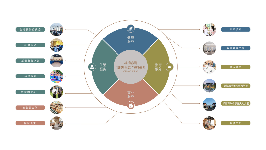 楊柳春風八載造城之路,成功構建并持續優化涵蓋教育、商業、生活、健康四大維度的全景生活服務體系,致力于為業主提供全生命周期、全場景服務。通過藍熙健康小屋、社區診所,為業主量身定制個性化健康管理體驗服務。
