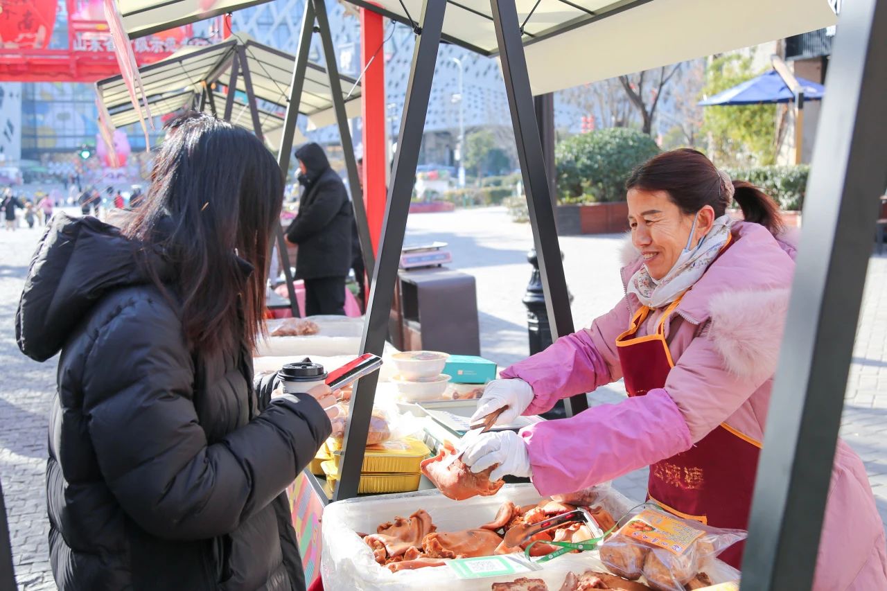 本次活動現(xiàn)場設置展位40余個,商河縣、槐蔭區(qū)興福街道、鋼城區(qū)顏莊街道及建設集團共40余位駐村“第一書記”為市民游客帶來了百余種特色農副產品。其中,商河大酥梨、玉皇廟豆腐皮、玉皇廟核桃酥、七彩野雞蛋、古梨醋飲、梨膏糖、臘八蒜、香酥煎餅、芝麻香油、泉水粉皮等優(yōu)質農特產品“出村進城”,與廣大游客朋友見面,全方位展示了當地豐富的農業(yè)資源和獨特的農副產品,有力推動農業(yè)與文化旅游的深度融合,為鄉(xiāng)村振興注入新的活力。