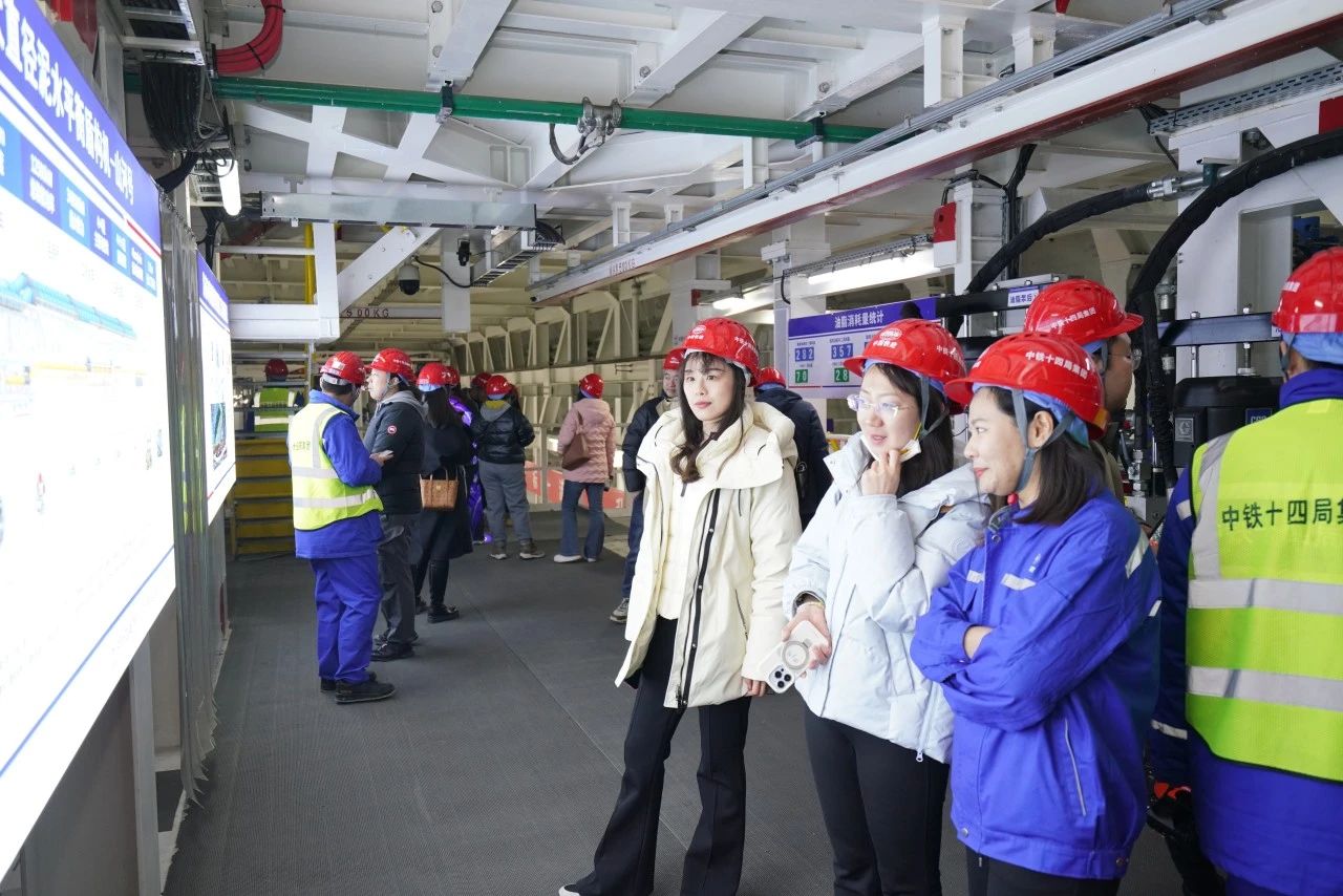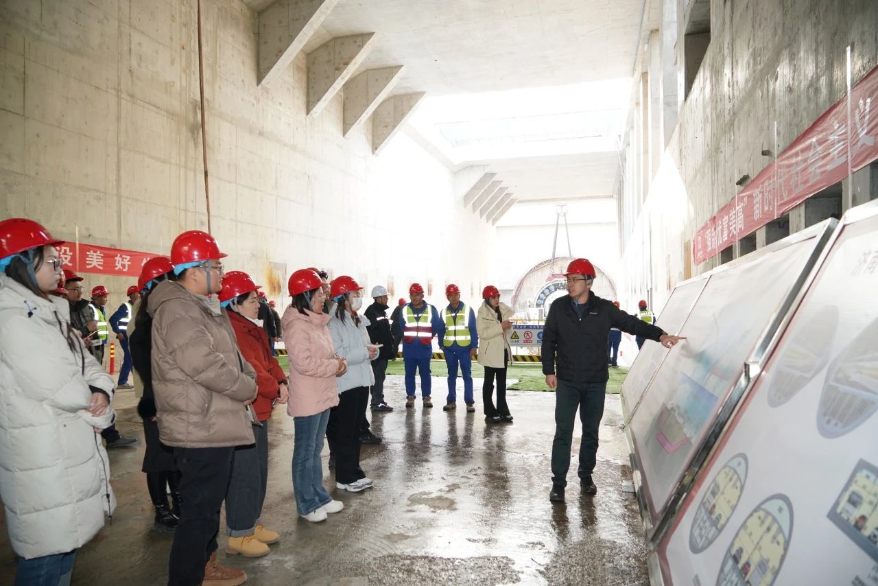 在濟南市黃崗路穿黃隧道,媒體記者參觀隧道展廳,前往盾構施工現場詳細了解項目建設推進情況及施工保障管理措施。