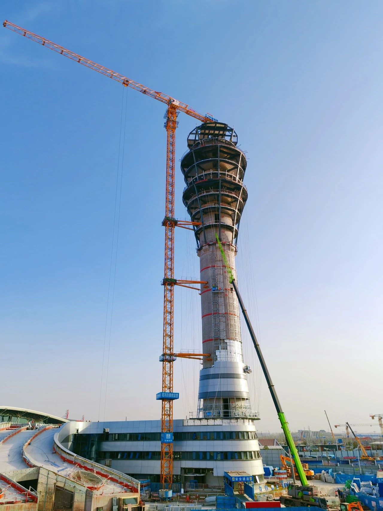 新建機場塔臺高度為99.5米,共19層,是國內(nèi)第一個具備三層指揮層的塔臺。其中19層為指揮層,可俯瞰整座機場范圍,17層和16層是機坪指揮以及空管的應急指揮層。項目于2024年1月10日開工,2024年4月30日完成土方開挖,2024年6月5日完成結(jié)構(gòu)正負零,2025年1月21日塔臺核心筒封頂,2025年3月19日完成筒外鋼結(jié)構(gòu)吊裝。