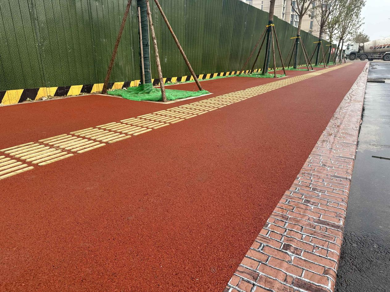 濟南新舊動能轉(zhuǎn)換起步區(qū)總部經(jīng)濟四期工程安置五區(qū)項目積極響應(yīng)創(chuàng)新提效號召,在人行道使用聚氨酯彩色瀝青,收效良好。聚氨酯彩色瀝青分子鏈中含有氨酯基或異氰酸酯基類的膠粘劑,其與瀝青材料通過物理粘接形成強度不同的混合物。聚氨酯膠粘劑具備化學(xué)反應(yīng)活性,與碎石混合后可以吸收空氣中的水分或外加水以及與碎石表面結(jié)合水發(fā)生化學(xué)反應(yīng),形成強度極高的化學(xué)粘接,從而極大提高混凝土的力學(xué)強度。項目人員精心籌備,嚴(yán)格按照規(guī)范施工,鋪筑路面表面平順一致,整體效果美觀大方。