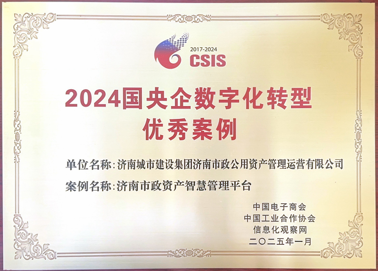 市政資產公司建設的“濟南市政資產智慧管理平臺”榮獲“2024國央企數字化轉型優秀案例”